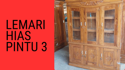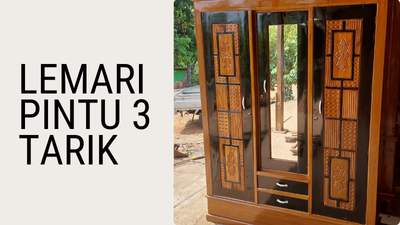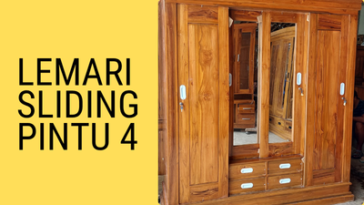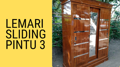 Lemari Baju Pintu 3 model sliding bahan full kayu jati di lengkapi laci bawah